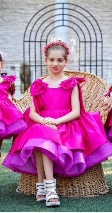 پیراهن مجلسی دخترانه مدل ساتن و تور طرح پنتی