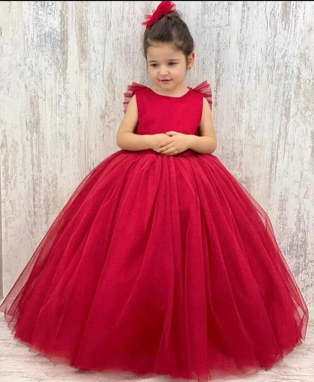 بالاتنه ساتن آمرکایی و دامن تور با پف مناسب و پشت کار با حلقه زیبای مروارید کار شده است .