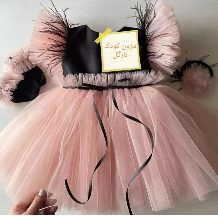 پیراهن مجلسی ساتن آمریکایی با دامن تمام تور و لبه آستین پر و تور کار شده است که کار را بسیار شیک و زیبا نموده است .