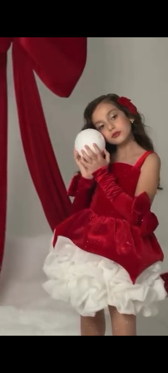 پیراهن مجلسی دخترانه مدل حباب برفی-قرمز